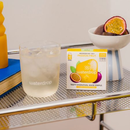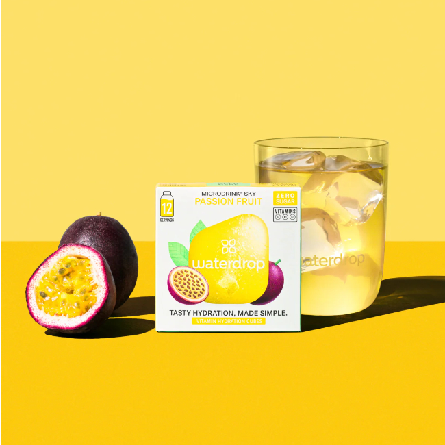 Effervescent cube used to create a refreshing drink with the taste of pineberry and passion fruit, as well as cactus fruit extract with sweetener and vitamins.