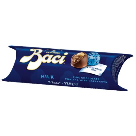 Baci® Perugina® Milk, with its blue wrapper, is an irresistible treat. The soft inner and the crunchy whole hazelnut are enhanced by the velvety milk chocolate, for a moment of creamy and irresistible pleasure.
