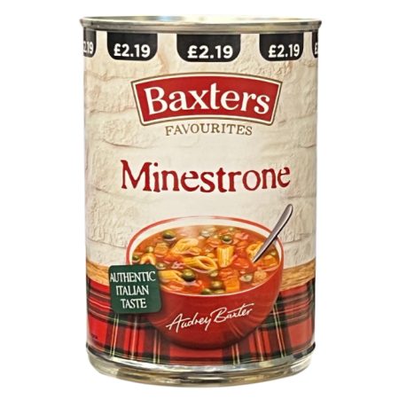 12 x 400g tinsThis soup is full of Mediterranean flavour; Baxters season tasty vegetables & pasta with garlic, oregano & basil to create this classic variety. For the full effect, enjoy it with parmesan cheese & garlic bread.