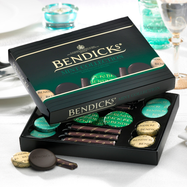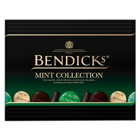 The ultimate mint chocolate assortment. A selection of delicious after dinner mint chocolates, when only the best will do, this Mint Collection will never fail to impress. A selection with something for everyone. The Mint Collection contains: Bittermints, Bendicks most renowned after dinner mint comprising of intense peppermint oil and 95% cocoa solids’ chocolate. Mint Crisps, distinguished by their handmade honeycomb wrapped in smooth, dark chocolate and natural peppermint taste. Elizabethan Mints – Dark chocolate with a soft peppermint fondant centre. Dark English Mints – Dark chocolate baton infused with fresh peppermint oil.