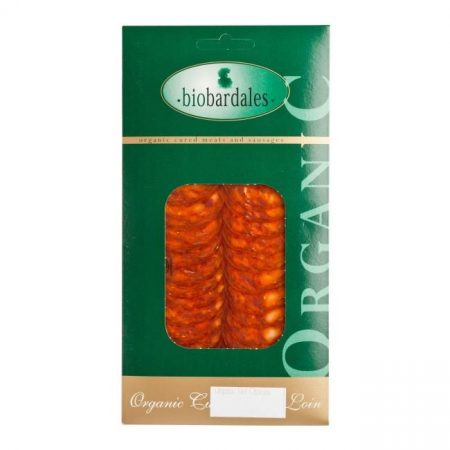 Made from the meat of a herd of pigs that range freely in a farm in the east of La Rioja, eating grasses and nuts, supplemented, where necessary with organic cereals. This cured chorizo is simply seasoned with salt, black pepper and mild paprika, allowing the clean flavour of the organic meat to come clearly through.
