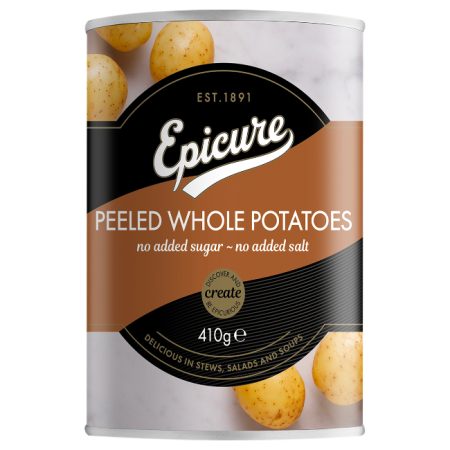 12 x 410g tinsA staple of British cooking, firm and freshly harvested. Epicure Whole Potatoes are carefully selected from a continuous supply of freshly harvested and firm cooking potatoes throughout the year. Use as cold in your salads, tapas with seasoning or fry them to complement your recipes.