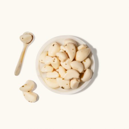 Pickled in wine vinegar infused with oregano and tarragon, this garlic has a full and savoury sweetness. These classic Spanish encurtidos (pickles) can complement everything from canapes to cocktails, or simply be eaten with a cold beer or a glass of wine. Serve it as a tapa alongside olives and anchovies for a simple, classic snack, or use it to add flavour and texture to pasta sauces, antipasti platters and sautéed vegetables or a stir fry.