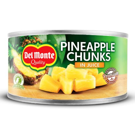 12 x 227g tinsDelight your palate in the sweetness of tropical pineapple all year round with Del Monte® canned pineapple chunks. They are hand-selected and packed fresh in 100% real fruit juice. These bite-sized chunks of delectable pineapple are perfectly enjoyed in your favourite desserts, savoury recipes, or as a simple fruit snack that’s ready to eat.