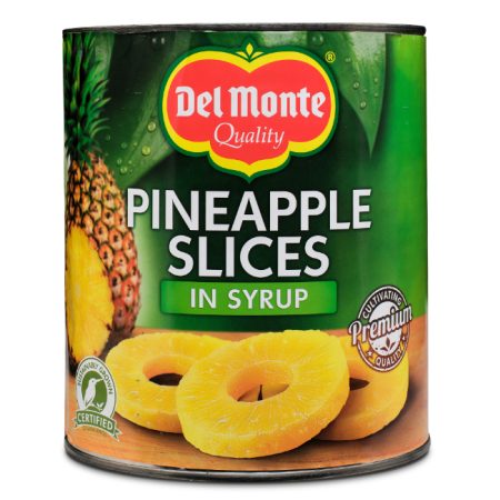 6 x 3.07kg tinsDel Monte® offers the world’s finest canned fruits in syrup, light syrup and juice that can be used alone or in a recipe. Del Monte® selects Kenian juicy pineapple in its owned plantations, which have a unique balance of sweetness and acidity. Del Monte® Pineapple Slices in syrup can be used for baking your desserts and also as an essential ingredient in exotic fruit salads, cocktails or smoothies.