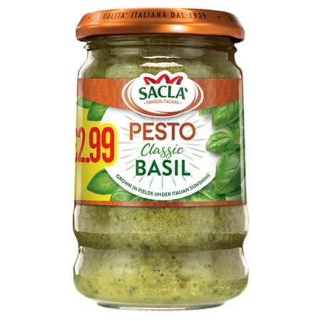 6 x 190g jarsTo make Classic Basil Pesto, Sacla pound together fresh basil leaves with Grana Padano, Pecorino Romano and pine nuts. With one jar of Basil Pesto you can create endless authentic dishes and Italian sides – from Friday night pizza and garlic bread, to prawn pasta and chicken tagliatelle.