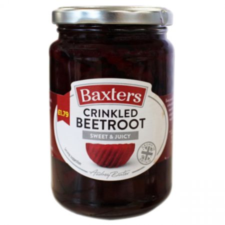 At Baxters they pride themselves on producing the highest quality and best tasting beetroot. Their freshly harvested baby beetroot is the pick of the crop. Its gently steam cooked in small batches and then hand sorted to ensure only the best makes it into their jars. They then pickle in a traditional sweet vinegar made from 100% British barley to ensure a truly delicious taste.