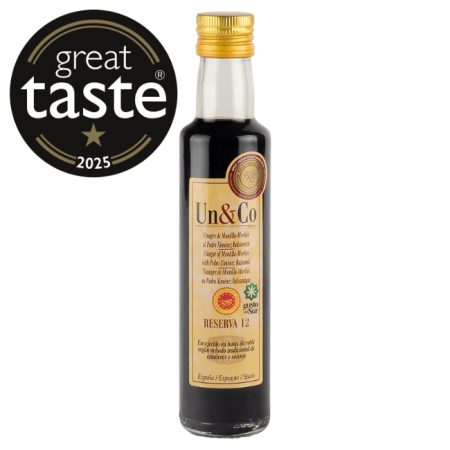 6 x 250ml bottlesDried fig, raisin and plum flavours from sweet Pedro Ximénez grapes. Aged for 12 years in oak barrels. Pedro Ximénez vinegar is one of the most distinctive tastes in Spanish cooking. This example is made with sweet PX grapes exclusive to the area where the winery is located, in the heart of the Montilla-Moriles Protected Denomination of Origin, in the province of Córdoba. Made in the balsamic style, with grape must (boiled, reduced grape juice) added to the vinegar, and aged in American oak barrels for 12 years, resulting in a delicious vinegar with a wonderful acidic balance.