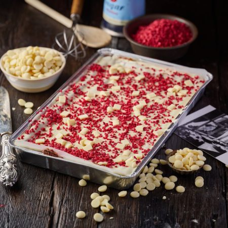 Raspberry & White Chocolate Brownie Ngci Tray Cake