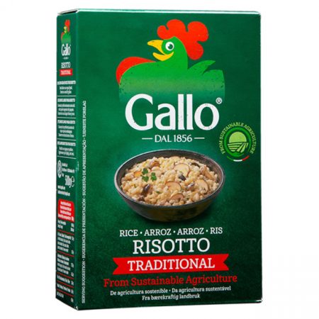 12 x 500g packetsRiso Gallo brings you the best Italian Risotto Rice selected from the best rice fields of the Po Valley, motherland of Risotto and Risotto Rice. Riso Gallo guarantees the origin of the rice from selected rice farms; the traditional stone husking using “Amburgo” model whitening machines (dating from 1898); and a careful grain-by-grain selection process.