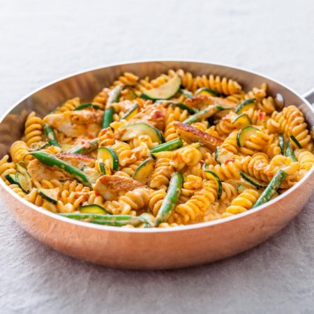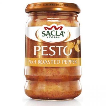 Roasted Red And Yellow Peppers (27%), Red Peppers (Sulphites), Sunflower Seed Oil, Tomato Paste, Basil (8%), Almonds, Medium Fat Hard Cheese (Milk), Rice Syrup, Garlic, Salt, Acidity Regulator: Lactic Acid, Natural Flavouring (Milk, Celery).