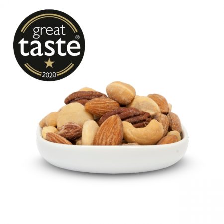 A traditional baked & salted mix of nuts (cashews, almonds, macadamias, pistachios, pecans) as served at one of London’s leading boutique hotels