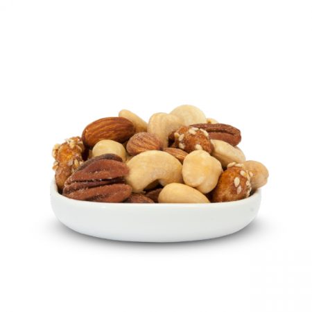 One of our salted and sweet mixes. Traditional baked & salted nuts (cashews, almonds, pecans, hazelnuts) complimented by the sweet caramelised sesame peanuts