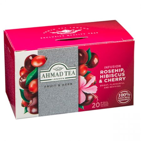 6 x 20 boxesThis excellent infusion takes the bold deep flavour of hibiscus herb and combines it masterfully with the fragrant beauty of rosehip. Add a splash of cherry for a unique touch that adds extra depth of flavour and a natural sweetness. Rosehip is rich in antioxidants and will help resist both mental and physical fatigue to soothe and revitalize your mind and body.