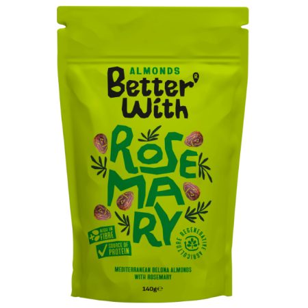 Rosemary and Sea Salt flavoured almonds are natural, gluten-free, crunchy and versatile. This version of Better With almonds adds a unique and authentic flavour to your snacks, with a distinctive finishing touch of rosemary.