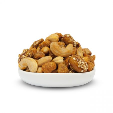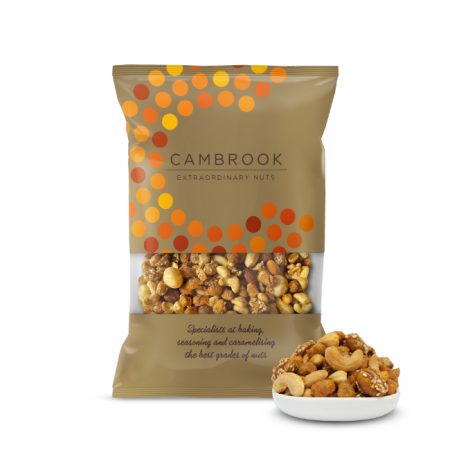 Another variation on one of our specialities – chilli battered peanuts and baked & salted cashews combined with the sweetness of caramelised sesame peanuts