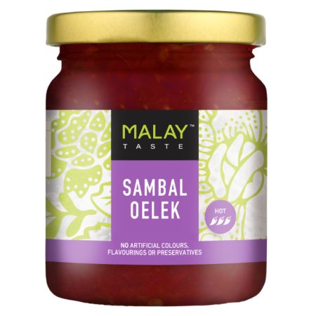 6 x 185g jarsUsed extensively in Malaysia, Sambal Oelek is a basic paste or sauce made by blending chillies. Sambal is used as a base or in Rempah (spice paste) for cooking. It can also be served as a condiment at the dinner table.