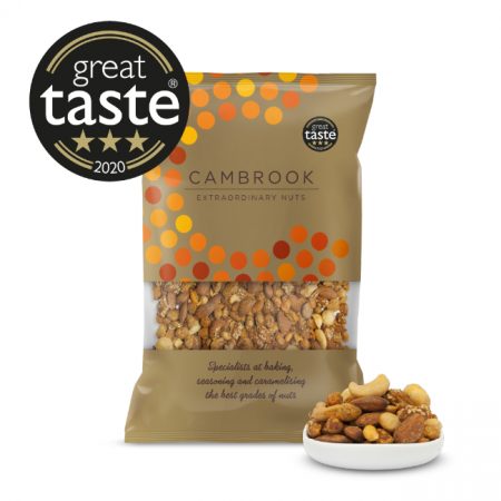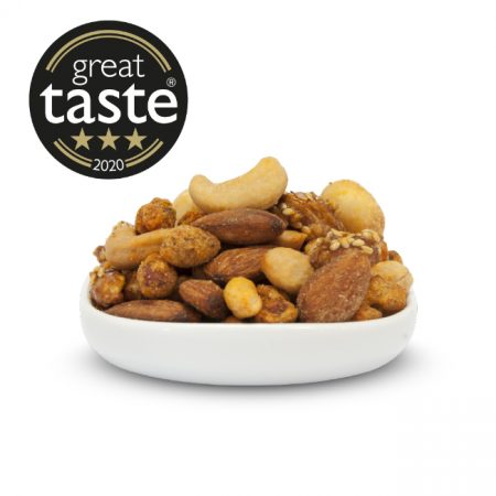 A unique and fantastic mix of flavours, combining salted nuts (cashews, macadamias), chilli battered peanuts, smoked almonds and caramelised sesame peanuts.