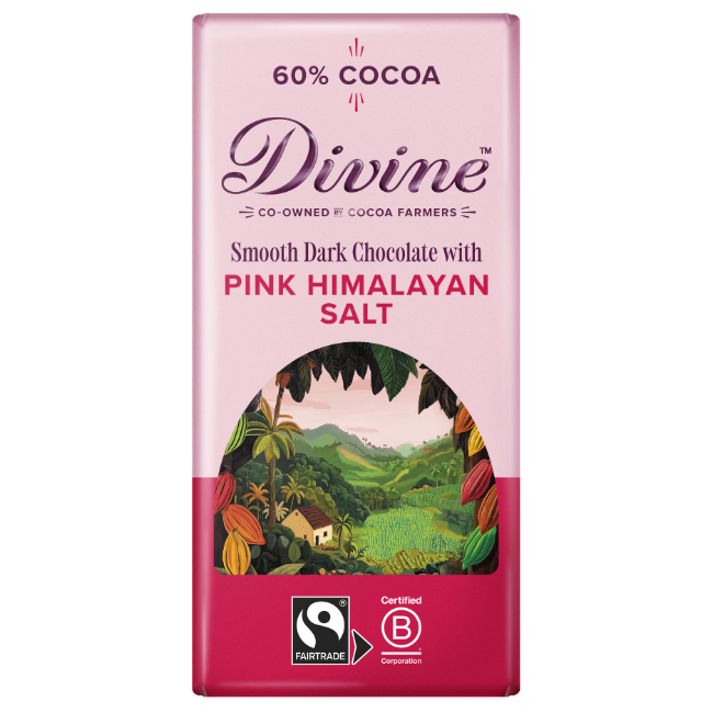 Made with the finest Fairtrade cocoa beans from Ghana and only ever using natural flavours and ingredients, every bar directly improves the lives of farmers and their families. Smooth dark 60% chocolate perfectly balanced with pink Himalayan salt flakes.