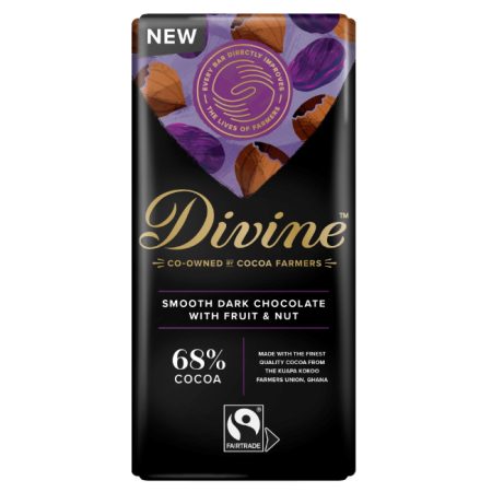 Made with the finest Fairtrade cocoa beans from Ghana and only ever using natural flavours and ingredients, every bar directly improves the lives of farmers and their families. Smooth 68% dark chocolate with chopped roasted hazelnuts and plump Fairtrade raisins. A fruit & nut bar for grown-ups!