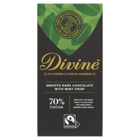Made with the finest Fairtrade cocoa beans from Ghana and only ever using natural flavours and ingredients, every bar directly improves the lives of farmers and their families. Smooth dark chocolate with fragrant pieces of mint crisp for a refreshing aftertaste.