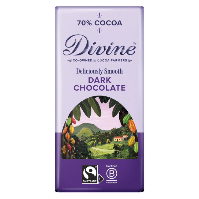 Made with the finest Fairtrade cocoa beans from Ghana and only ever using natural flavours and ingredients, every bar directly improves the lives of farmers and their families. Smooth and rich 70% cocoa dark chocolate.