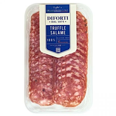 6 x 80g traysEnriched with black truffles, this Salame is an authentic Italian speciality and an all-time crowd pleaser. It’s unique and luxurious flavour is ideally served with crostini and soft cheese.