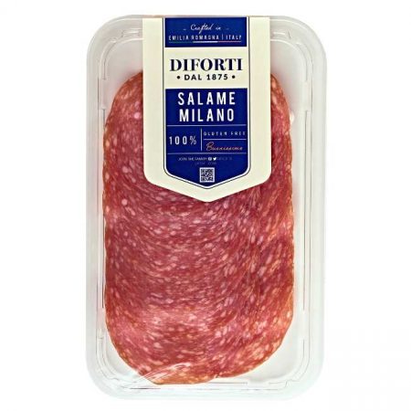6 x 80g traysOriginating in Milan, this extremely popular salame is made with finely cut meat and has a mild, sweet and delicate flavour. It’s made from carefully selected pork cuts. Versatile in its uses, Diforti’s Salame Milano is the perfect tasty addition to any authentic Italian food platter and delicious when joined by vegetable antipasti and soft cheeses.