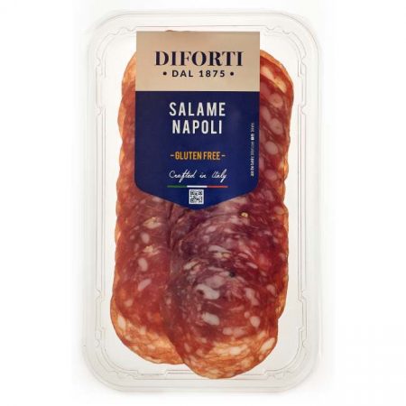 6 x 80g traysMade from prime cuts of meat, salame Napoli is a medium coarse cut salame seasoned with black peppercorns and spices, giving it a sweet and delicate flavour. It is one of the most widely eaten of all Italian salame.