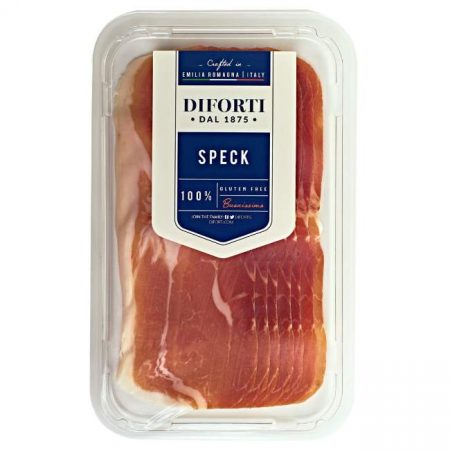 6 x 80g traysBased on a traditional recipe of Alto Adige in the Italian Alps, this Speck is made from the finest quality pork. Seasoned with salt and spices, the meat is briefly smoked with beech and maple wood in a special oven before being left to cure. The perfect spicy addition to any authentic Italian food platter, our Alpine Speck is delicious when joined by a selection of vegetable antipasti, such as chargrilled artichokes.