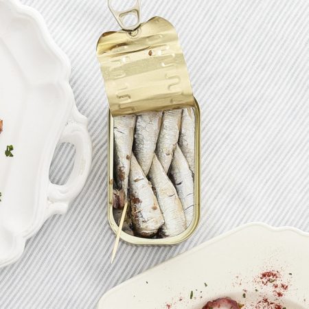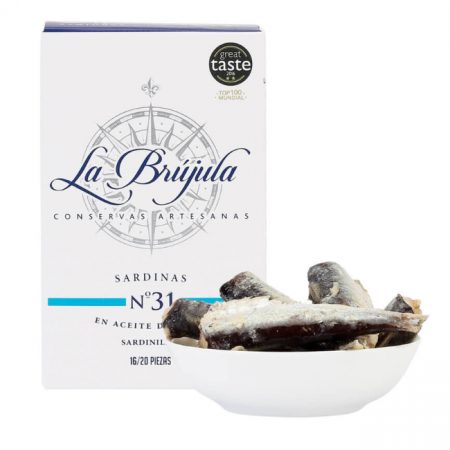 24 x 115g tinsConservas Nardin only buys mackerel caught in the Cantabrian Sea; the fish destined to be used for their smoked mackerel are brined, rather than salted, and then cold smoked whole over beech wood before being filleted, trimmed and then tinned in olive oil. They are tender, moist and succulent with a beautifully balanced taste. All of these sardines are fished in the plankton-rich waters off the coast of Galicia, between June and October, and processed immediately. They are prepared by hand and put into wire trays and gently steamed, before being packed by hand into tins, which are filled up with olive oil. They have a firm texture and a mild, deeply agreeable flavour. This product has been awarded with 2 stars in the Great Taste Awards 2016. The judges’ comments were: “Tiny sardines that are bathed in very pleasant-tasting oil. We love their size and their firm texture and simple uncomplicated but good flavour. Very agreeable sardines! They’re great for canapes or other finger foods because of their size too.”