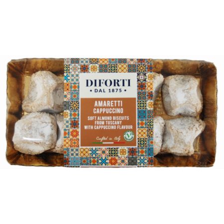These Diforti Soft Italian Amaretti biscuits are hand finished to give them their distinctive shape and flavoured with cappuccino.
