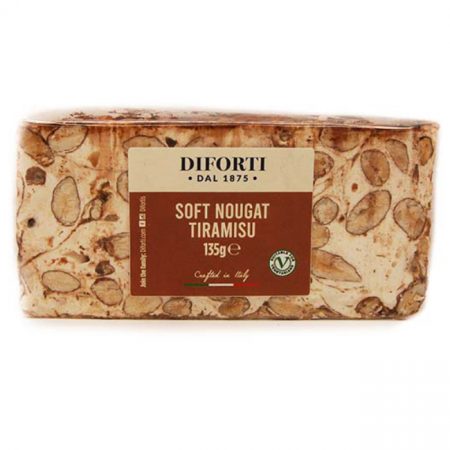 Sugar, Almonds, Glucose Syrup, Honey, Tiramisu Paste 4% (Marsala Wine, Egg Yolk, Sugar, Condensed Milk, Coffee 3,3%, Sunflower Oil, Colour: Caramel, Alcohol, Flavourings, Stabiliser: Carrageenan), Egg White, Gelling Agent (Pectin, Sodium Alginate), Coffee Paste (Glucose Syrup, Coffee Extract 15%, Colour: Caramel, Powdered Coffee 6,5%, Sunflower Oil, Flavourings), Cocoa Powder, Flavour, Wafer (Potato Starch, Water, Sunflower Oil).