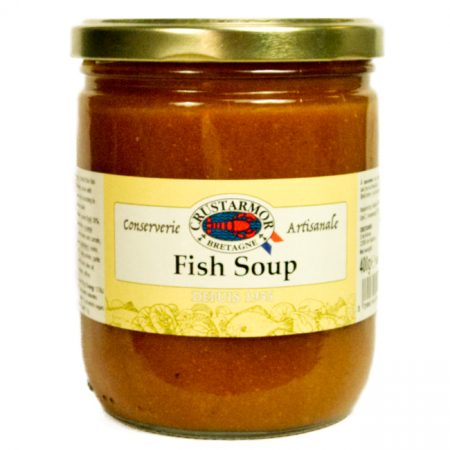 A delicious fish soup from Crustarmor, based in Brittany. This is a traditional Bretton recipe using fish, shellfish, tomato concentrate and vegetables. Simply heat and serve with cream, croutons and rouille.