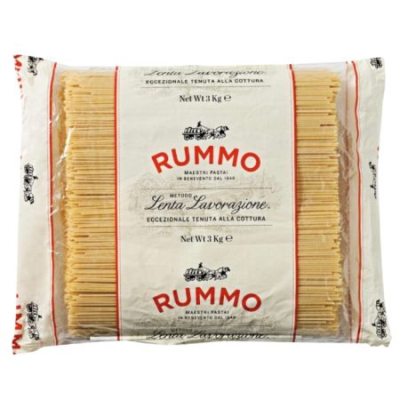 4 x 3kg packetsWhether served with clam sauce, tomato, or chili and garlic (“Midnight Spaghetti”), Rummo Spaghetti No. 3 is an exemplary representative of the great Italian classic loved the world over.