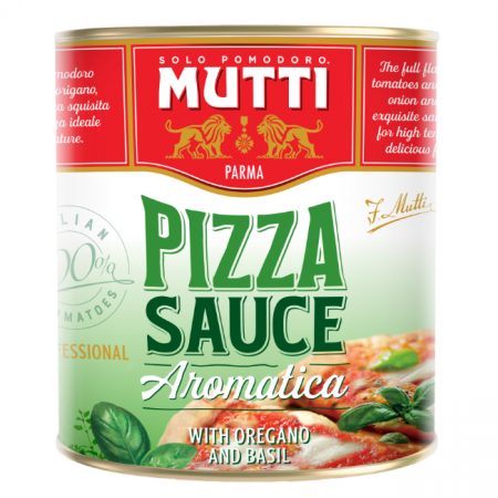 6 x 800g tinsMutti® Pizza Sauce with Spices (Salsa per Pizza Aromatizzata) is a rich combination of 100% Italian sun-ripened tomatoes blended with traditional ingredients – aromatic basil, oregano, and onion. It spreads uniformly over the pizza giving it an enticing aroma, bright colour, and rich taste. With 30% concentration, it is dense in texture and can be diluted with water without losing its rich consistency.