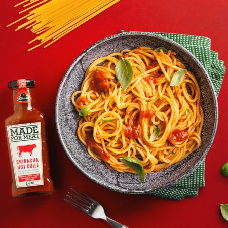 Two fiery talents meet in this hot Sriracha Hot Chili Sauce: Mexican jalapeños and Ancho chillies. Garlic and pieces of fruity tomato come together to create a finely chopped sauce that heats up your food. Sometimes you just have to spice up your life!