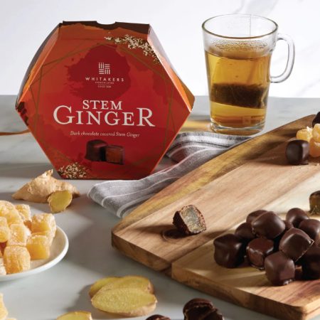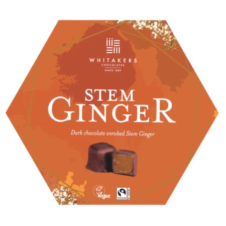 Indulge in the spicy warmth of Whitakers Chocolates’ Stem Ginger in Dark Chocolate, presented in a beautifully designed hexagonal gifting box. This exquisite offering features succulent pieces of stem ginger, smothered in our rich signature dark chocolate, creating a perfect balance of spice and sweetness. Ideal for lovers of bold flavours and fine chocolate, this selection showcases the innovative spirit and commitment to quality that defines Whitakers Chocolates.
