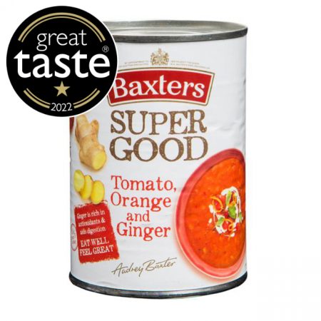 6 x 400g tinsSuper Good soups have the perfect balance of delicious flavours and “great for you” ingredients. Sweet ripe tomatoes and zesty oranges with a dash of warm, soothing ginger.