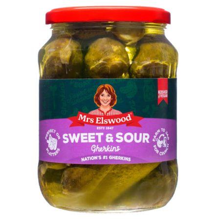 Whole pickled cucumbers with sweet and sour flavour. Guaranteeing premium quality for over 70 years, Mrs Elswood pickled cucumbers are harvested at the height of the cucumber growing season during June and July every year. Cucumbers are hand-selected for their shape and size before being pickled, packed and delivered, direct from the grower, to maintain freshness and full flavour. The unique flavour and seasonality of Mrs Elswood’s kosher pickled cucumbers makes them a store cupboard essential! Ideal to complement a cheese board or directly from the jar for a healthy and tasty snack!