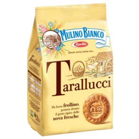 12 x 350g bagsTarallucci biscuits by Mulino Bianco are fragrant pastry biscuits made with eggs, which give them a rich and creamy taste. Ideal to dip into your morning milk, coffee or tea for breakfast, whit Mulino Bianco Tarallucci you can find the unique taste of the authentic Italian breakfast.