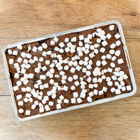 A combination of marshmallow and biscuits, topped with Belgian Milk chocolate and marshmallows.
