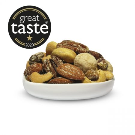 A mix of cashews, almonds, macadamias, pecans and pistachios, baked and seasoned with a distinctive aromatic black truffle and a sprinkling of tangy pecorino cheese