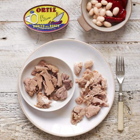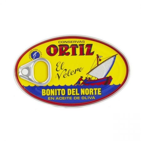 10 x 112g tinsOrtiz bonito tuna (Thunnus alalunga) is a smallish tuna generally weighing less than 20kg. All of the fish that Ortiz buy is caught on rod and line in the Bay of Biscay and then processed by hand. The flesh is a pale colour and has a delicate flavour that is at its best when eaten simply, in a salad for example.