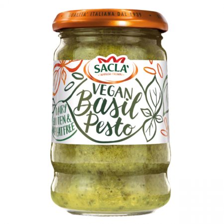 6 x 190g jarFree-from dairy, wheat, and gluten, but still full of flavour. Just like Sacla Classic Basil Pesto, this recipe has that authentic taste and texture. Instead of removing ingredients, they’ve used our expertise to find the ideal swap. In this case, tofu. Free From Vegan Basil Pesto is packed with goodness too.