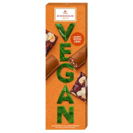 Vegan cocoa products with cocoa cream filling (51%) and almond pieces (5.5%). Vegan meets brownie and almond! The perfect harmony of crunchy almonds and chocolatey brownie is combined in Niederegger’s vegan almond brownie classics. A vegan and chocolatey treat of the highest quality.