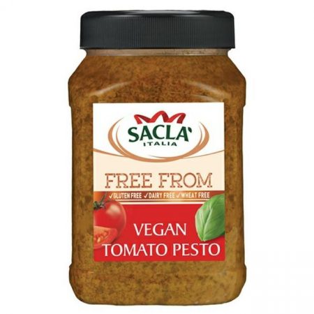 6 x 950g jarsJust like Saclas classic Sun-Dried Tomato Pesto, they’ve crammed every jar with Mediterranean tomatoes, fragrant basil leaves, pine nuts and sweet red peppers. Add Vegan Red Pesto to your Bolognese, make stuffed tomatoes or simply swirl through your favourite pasta.