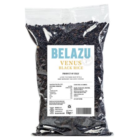 12 x 1kg bagsThe Venus of the title refers to the Greek god of love, fertility and beauty because black rice was considered an aphrodisiac by Asian emperors and their courts. This variety was created in 1997 by cross-pollinating an Italian risotto and Asiatic black rice. With a cooking time of 40-50 minutes it has a unique flavour and colour – deep burgundy when cooked – and the liquor can be used to make a separate broth with or without the rice.
