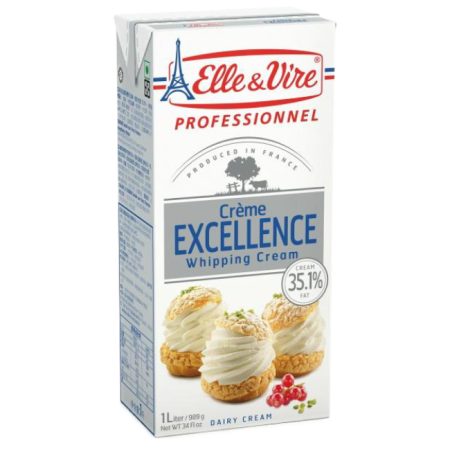 1 x 1l cartonElle & Vire Excellence Whipping Cream (35% fat) ensures consistent, stable results throughout the year. Born from a 70 years old Norman dairy savoir-faire, this cream is for use both in cooking and pastry making. Quick to thicken with great hold (no collapsing or seeping), the Excellence whipping Cream (35% fat) has an excellent whipping rate throughout the year (2.7 L on average) and is particularly good at bringing out different flavours, making it an indispensable ingredient for all of your dishes.