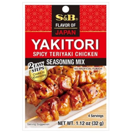 10 x 32g sachetsWith S&B SEASONING MIX, you can easily and quickly make the authentic Japanese taste like you had at Japanese restaurants without preparing multiple kinds of seasonings. Various selected spices and condiments are the key to the authentic taste.Yakitori features the taste of sweet and mild soy sauce with spiciness. You can prepare this just by rubbing the seasoning mix into chicken and cooking in a pan.